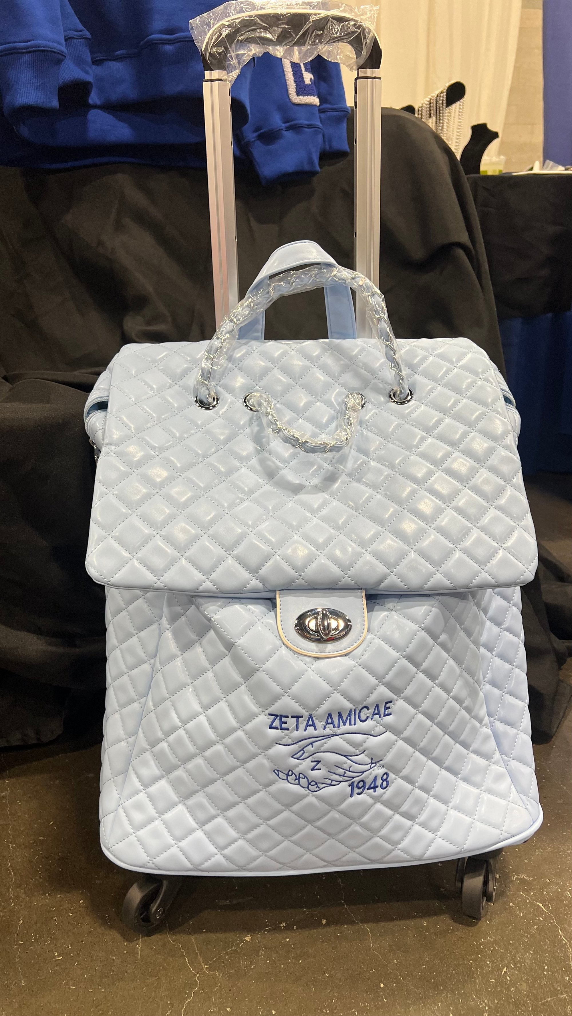 Elevate your travel game with this sleek and functional Quilted Tech Roller Bag, designed with both style and purpose in mind. Whether you’re headed to a conference, chapter meeting, or a weekend getaway, this all-in-one bag keeps your essentials organized and your look polished.
