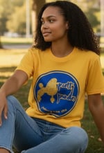 Pretty poodle shirt available in blue or gold perfect for everyday wear !